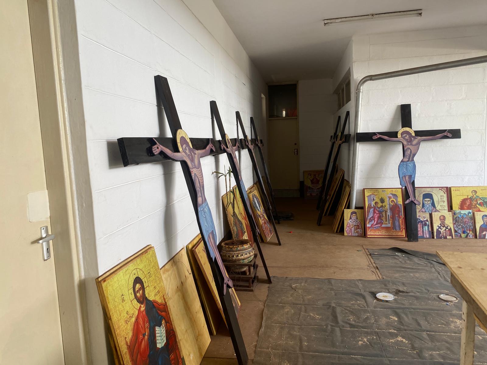 Installed sacred icons at St. Sophia’s, the college, and multiple Orthodox churches, including icons of Christ on the Cross, contributing to the spiritual life of the community.